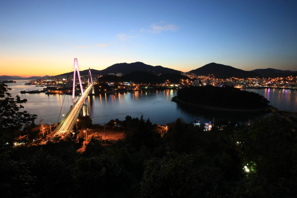 Dolsandaegyo Bridge is a cable-stayed bridge which was completed in 1984 with the length of 450m and width of 11.7m. It\'s said that the huge love and longing has turned into the bridge. It\'s in a great harmony with islands, sea and the Yeosu harbor. It\'s an inevitable tourist attraction of Yeosu with the beautiful night view. There are many cozy and nice cafes around the coast, it\'s one of the most popular place for couples.