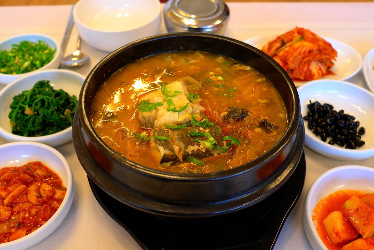동백꽃식당은 붕장어 전문점으로 장어 뼈를 푹 고아 만든 육수에 숙주, 고사리, 우거지와 갖은 양념 등을 넣어 요리한다. 이때 통통하게 살 오른 장어를 함께 넣어 끓여낸다. 맛 본이들은 입안에서 살살 녹는 장어 살코기 식감을 잊을 수 없을 것이다.